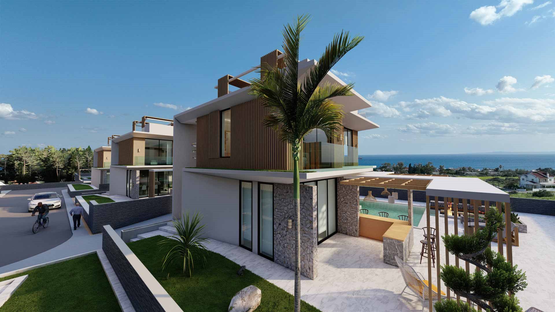 The Boğaz Vista complex comprises only 9 luxury duplex villas with private pools. These two-bedroom and three-bedroom villas feature spacious roof terraces.