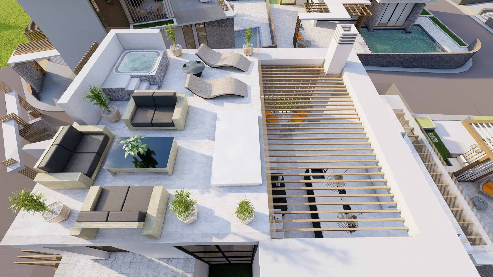 The independent two-bedroom villas, named Blue View, cover an area of 144 square meters, including a 40-meter roof terrace and a 20-meter private pool.