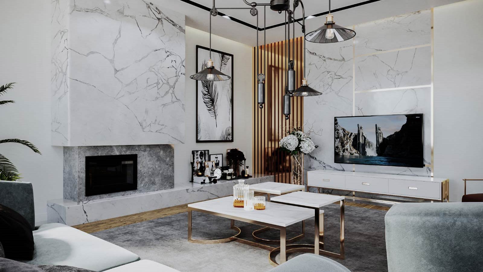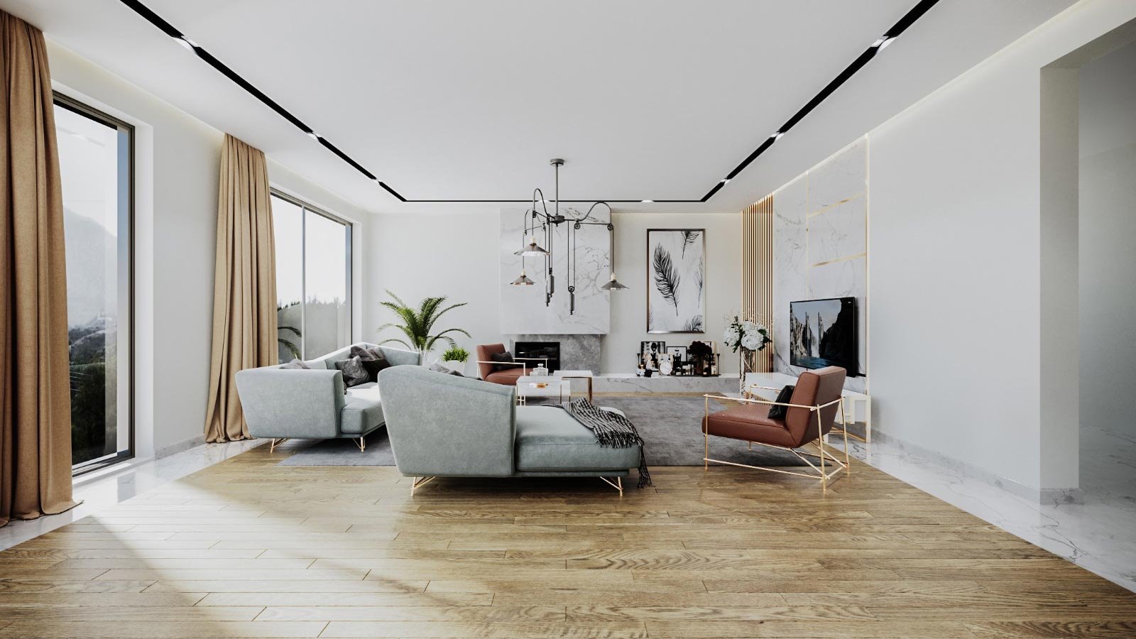 For this construction, these villas are made of quality materials, with A/C infrastructure for each room, central heating system infrastructure, double-glazed aluminum windows, American Press interior doors, steel entrance doors, insulation of external walls, use of natural marble in the staircases, moisture and heat insulation of the roof, use of first-class interior and exterior paint, 3 tons of water tank, solar panel, parquet in the bedrooms, and ceramic tiles in the kitchen, hall, and bathroom, fireplace, garage, and laundry room.