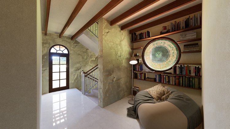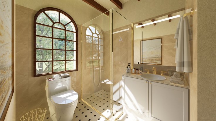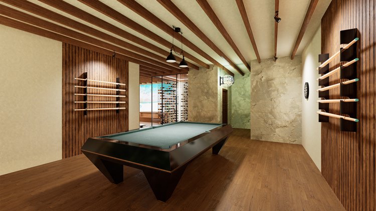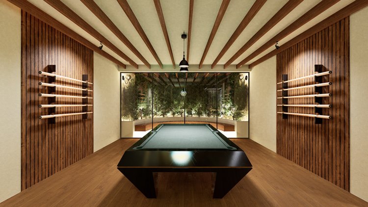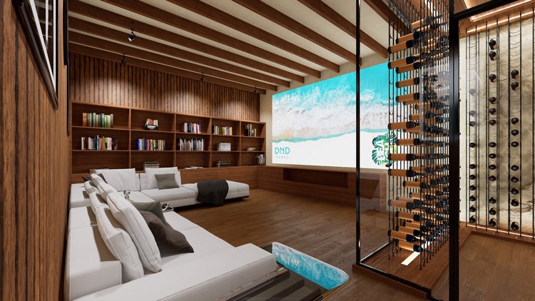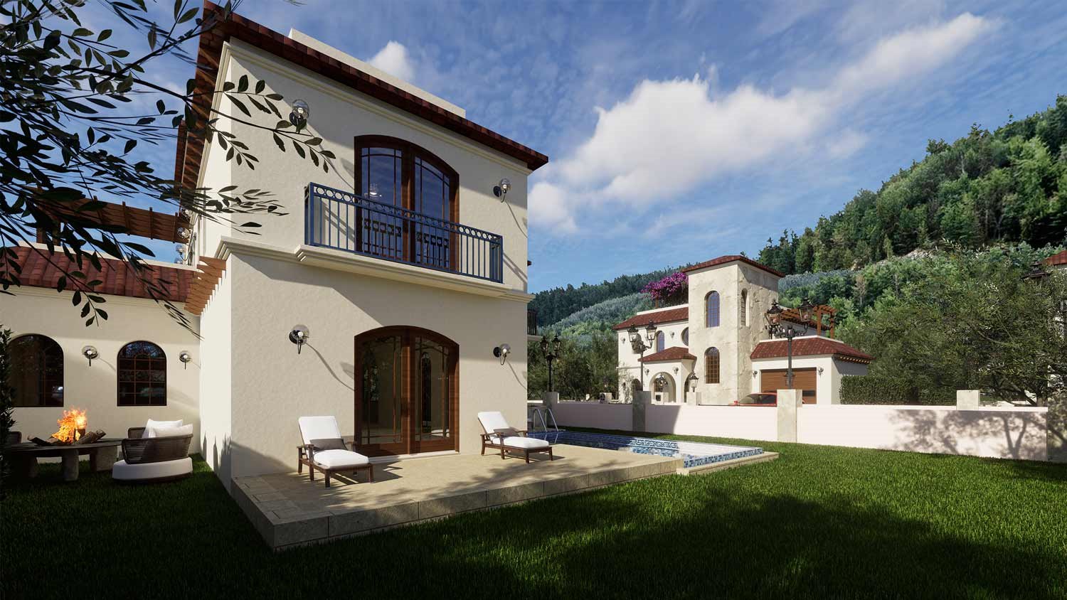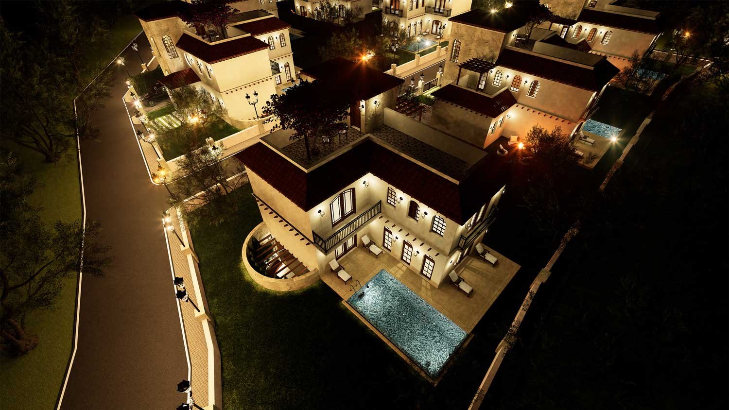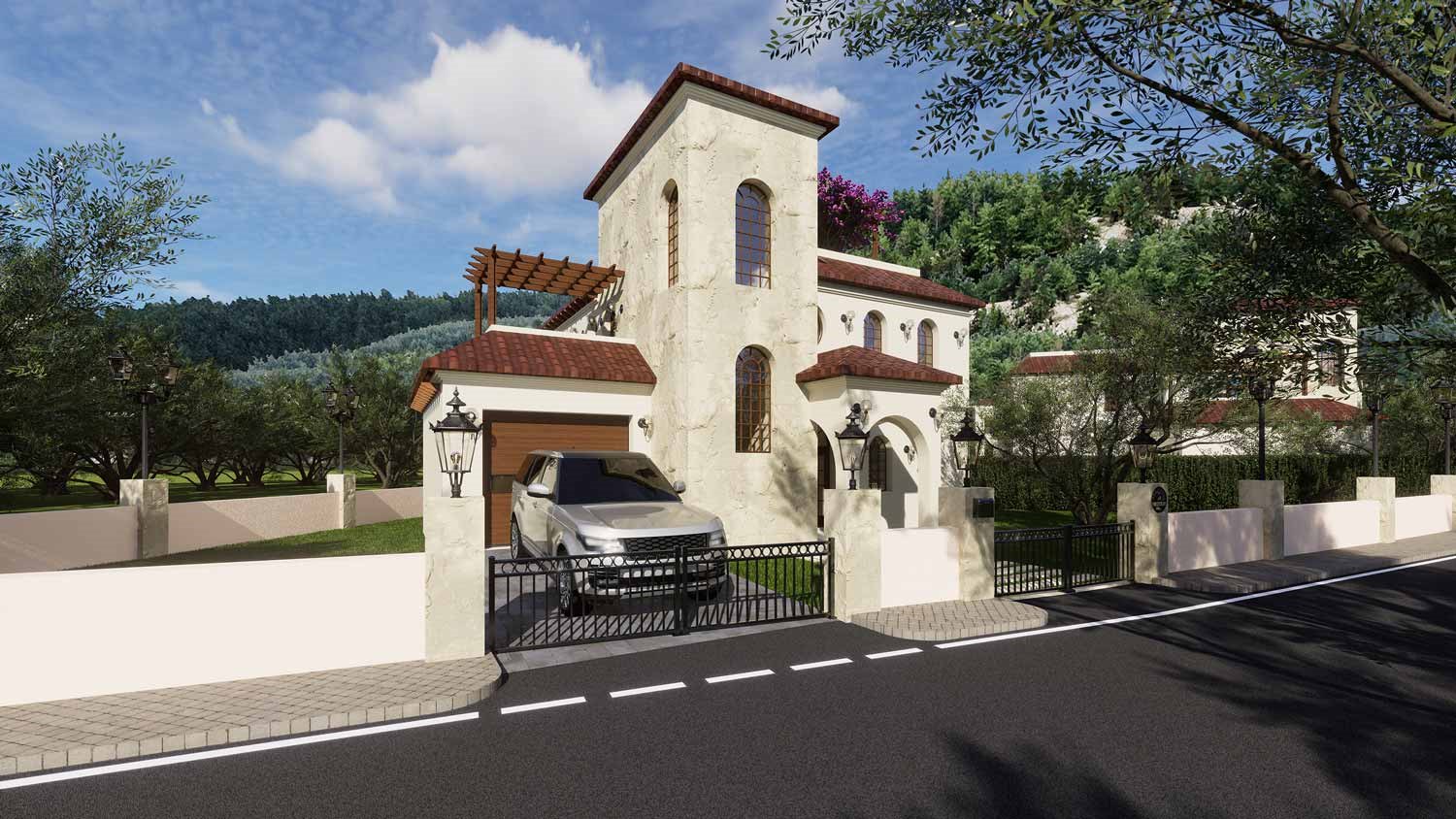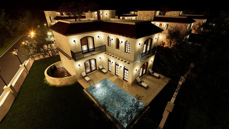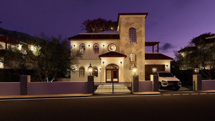 These American style villas have a cinema room, wine cellar, unique works of art on the colored glass windows for each villa, The game room, natural marble stairs, carved doors and windows, decorated ceilings, terracotta ceiling are immersed in the essence of the Mediterranean.