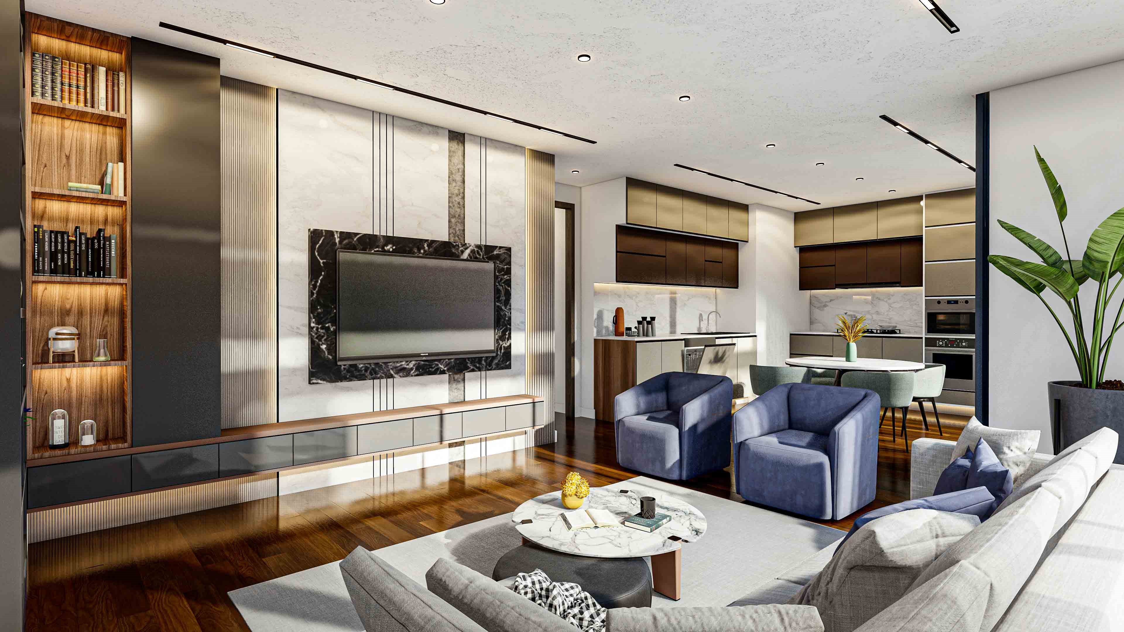 واحدهای آپارتمانی به صورت ۴ واحدی در ۳ بلوک B, A و C قرار دارند. هر بلوک دارای ۲ واحد گاردن و ۲ واحد لافت خواهد بود. در بلوک A، واحدهای لافت دارای ۷۵ مترمربع و در دیگر بلوکها دارای ۵۵ مترمربع روف تراس اختصاصی هستند.