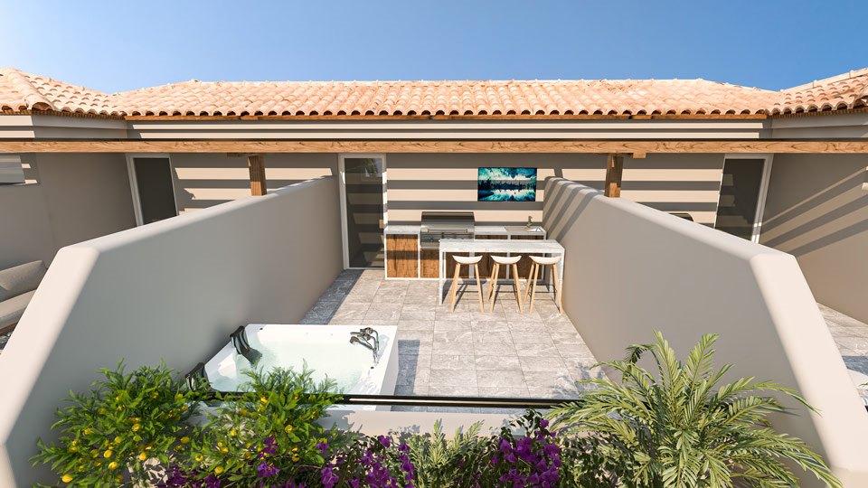 همچنین وجود پارکینگ 13متری مسقف زیر بلوک ها و وجود جکوزی - باربیکیو - مینی آشپزخانه و دوش در روف تراس از ویژگی های دیگر این پروژه به حساب می آید.