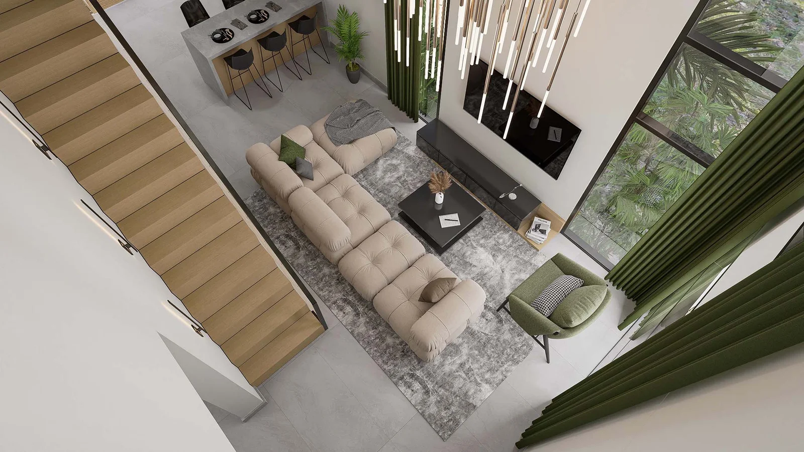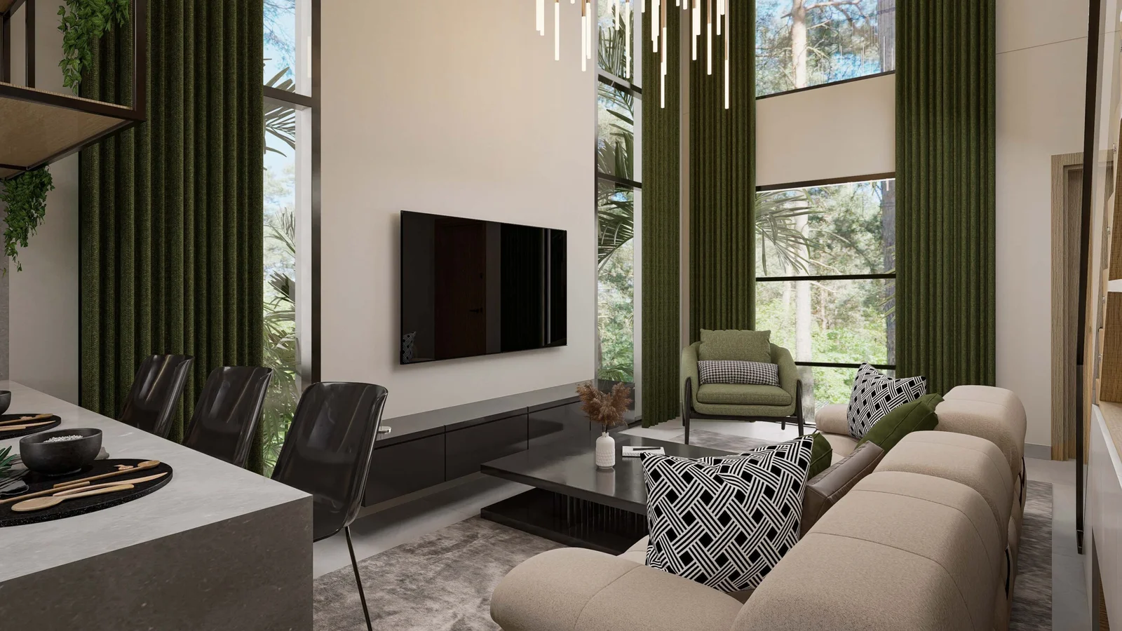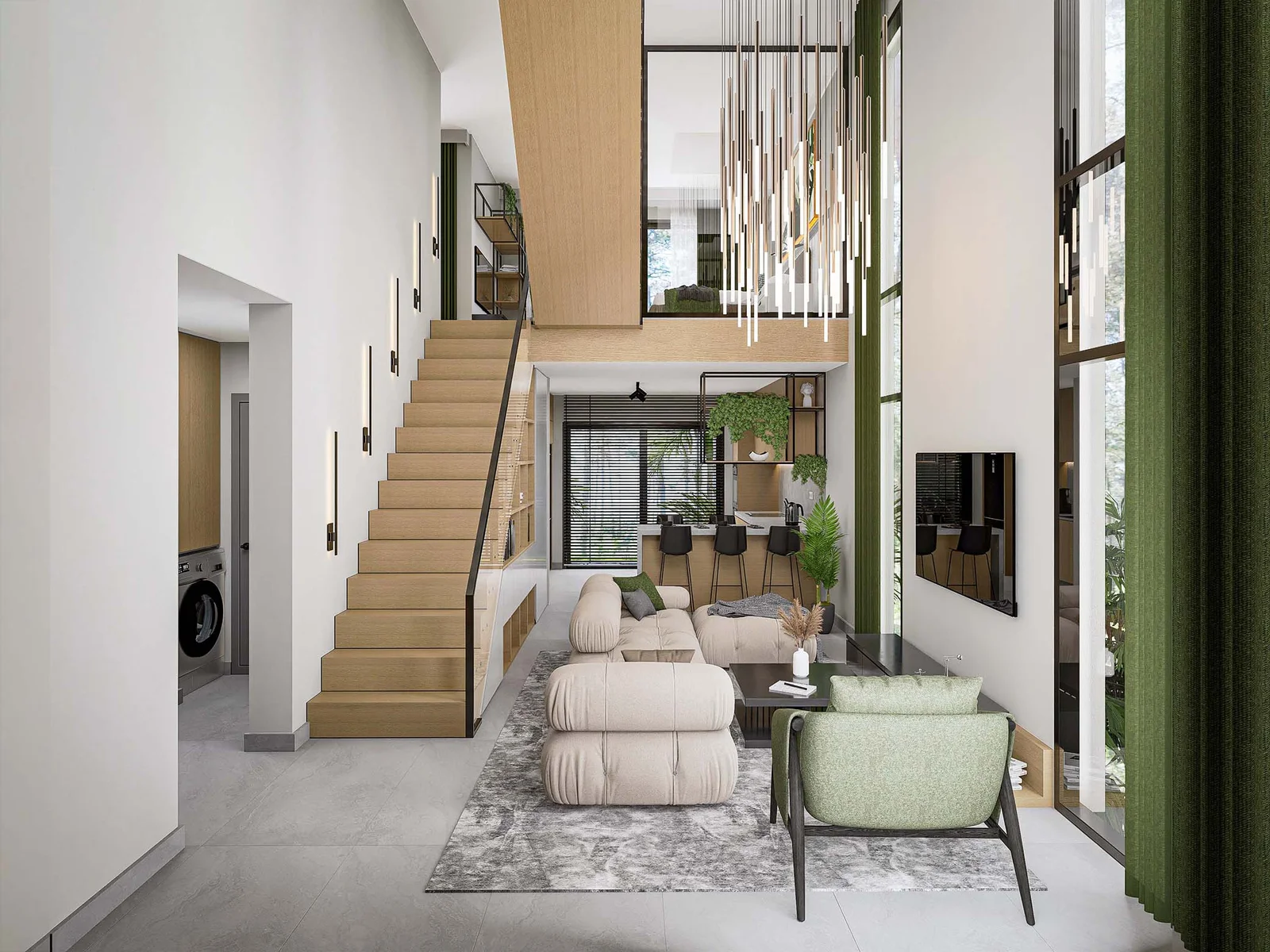 ارتفاع سقف در واحد های تریپلکس 5.5متر و همچنین دارای پنجره های قدی و بزرگ عایق حرارت و سرما خواهد بود.